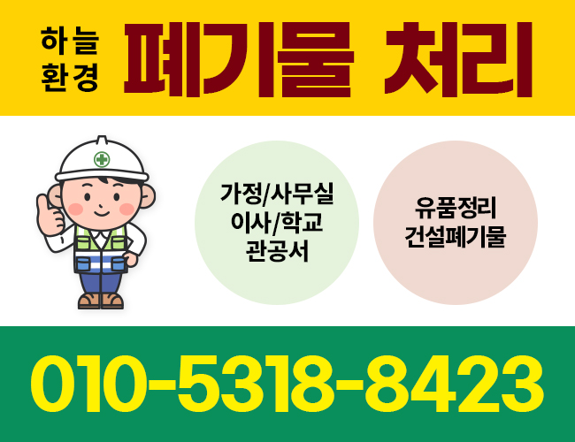 생활 속에서 발생하는 각종 폐기물과 정리·처분이 어려운 물건들을 신속하고 깔끔하게 처리해드립니다.